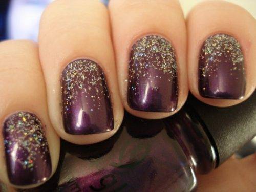 - При помощи блесток можно сделать маникюр, являющийся разновидностью французского. Кончик ногтя окрашивается прозрачным лаком, а затем он опускается в баночку с блестками. Лишние блестки убираются при помощи кисти.