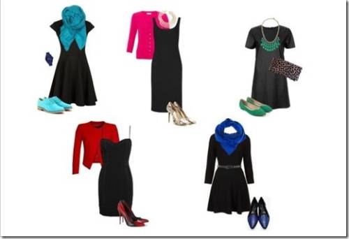 - Хорошая сочетаемость с аксессуарами и обувью. Жемчуг, серебро и золото хорошо смотрятся на тёмном фоне.