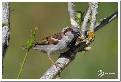 Особенно в период размножения домовые воробьи любят охотиться на насекомых.